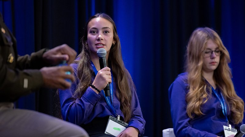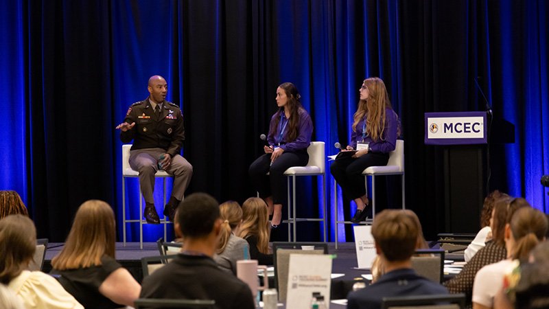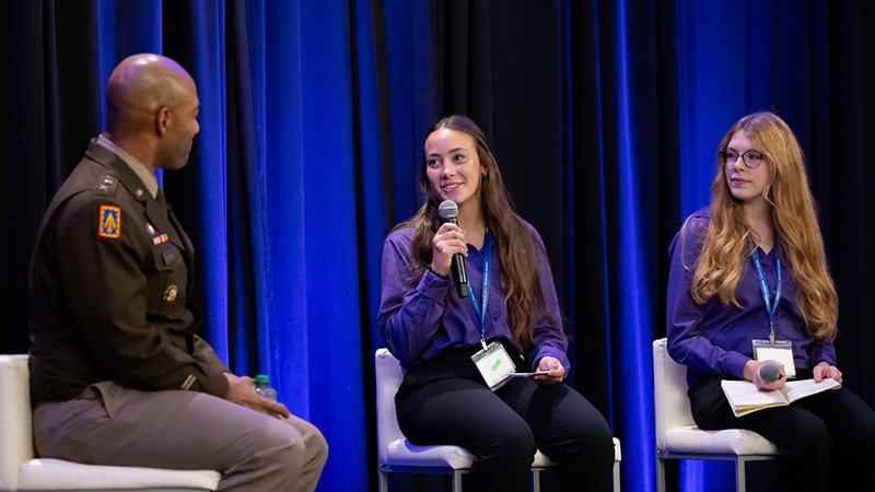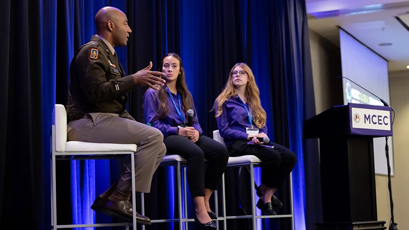 The 2025 Global Training Summit opened with a dynamic conversation between LTG Sean Gainey, Commander of the U.S. Army Space and Missile Defense Command, alongside Olivia and Emma, two members of the MCEC Student Advisory Committee. Guided by student-led questions, General Gainey spoke candidly about the role of technology in today’s military, future career opportunities in fields like AI and cybersecurity, and the importance of balance when it comes to how young people use technology.